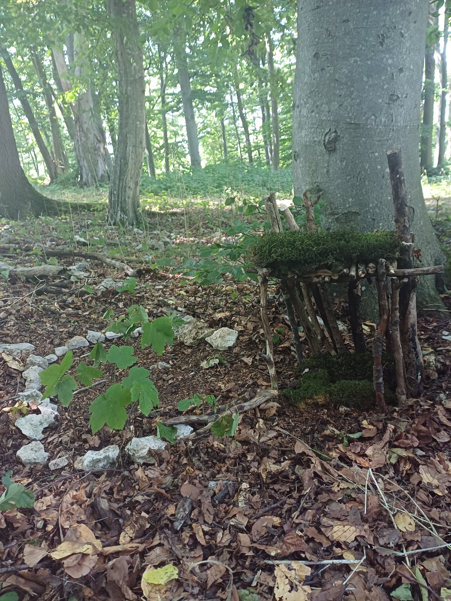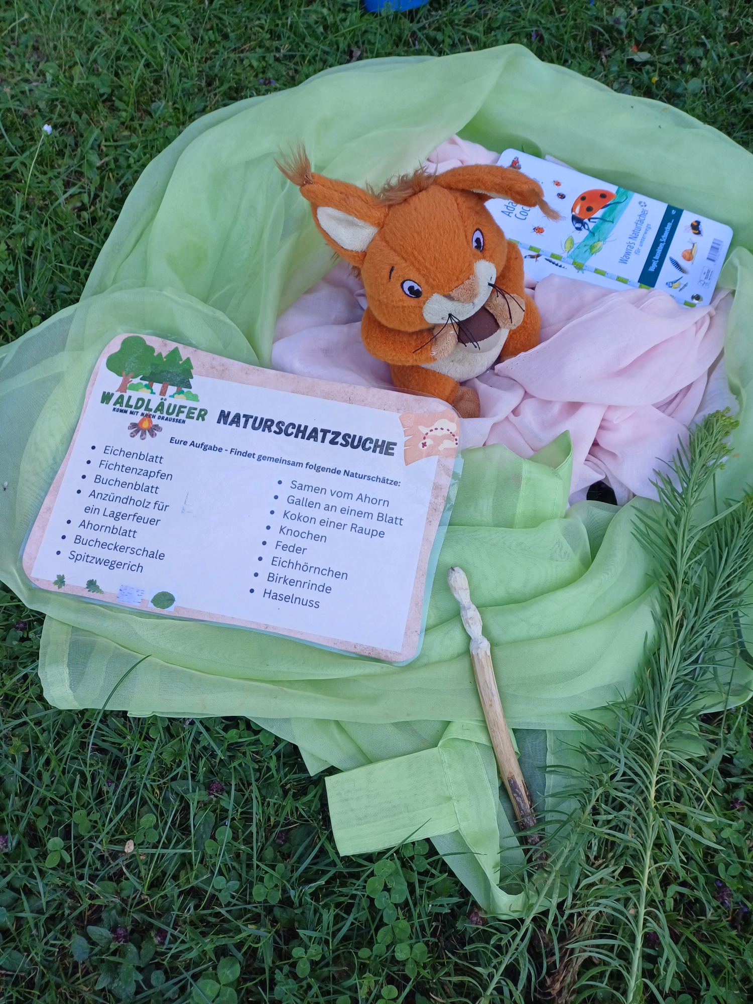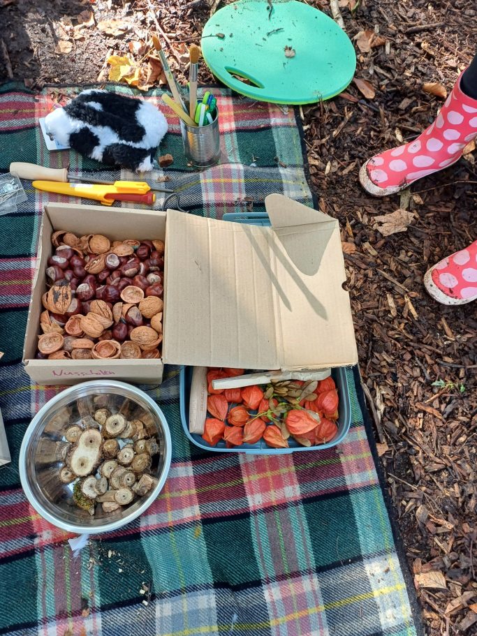 Die Einladung zum kreativen Schaffen und Materialien sind natürlich immer mit dabei ( Kinderschnitzmesser - nach ausführlicher Einweisung und nur mit Erlaubnis der Sorgeberechtigten, Sägen, Seile, Lupen.....;)